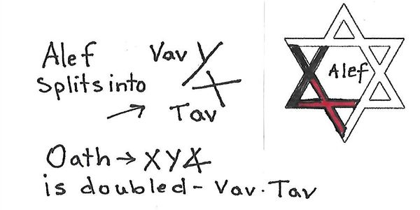 The first letter in Oath, the Alef, is split into the next 2 letters of the word, the letter Vav and the letter Tav. This shows us a second meaning within this word. The first Vav and Tav are the DNA gender letters for the first man created by God. His name is Adam and his wife's name is Eve. The second set of Vav -Tav letters is for the promised seed-son that God promised to Adam and Eve. This is the second Adam, man. This second promised Adam man is an "Oath" or a SIGN!